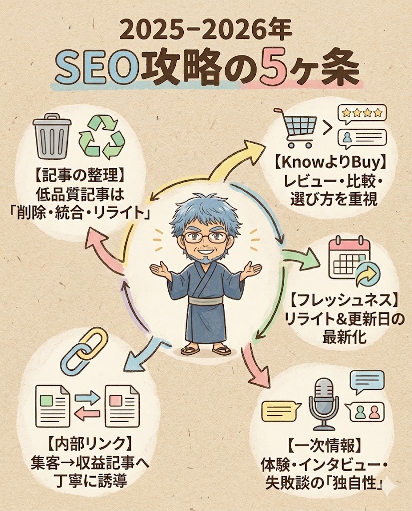 この記事では、2025年から2026年にかけて意識しておきたいSEOの方向性を、5つのポイントに整理してお